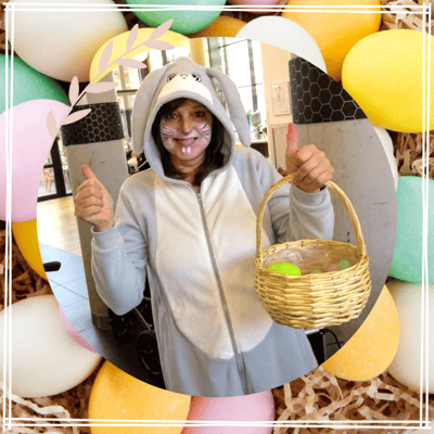 - Knutselen: de creatievelingen kunnen een paaskuikentje maken met echte veren of een mooie kleurplaat kleuren. Leuk voor thuis, maar helemaal leuk om die daarna aan een bewoner te geven als verrassing.