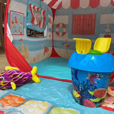 - Spelen: natuurlijk is ook al het gewone speelgoed er om mee te spelen, zoals de kinderkoffiebar, de tipitent, hondjes om uit te laten, boekjes en tafelspelletjes.
